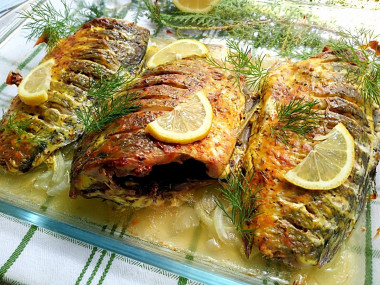 Запекать карася не доводилось, попробую. Обычно я жарю карася с луком в панировке на сковороде.