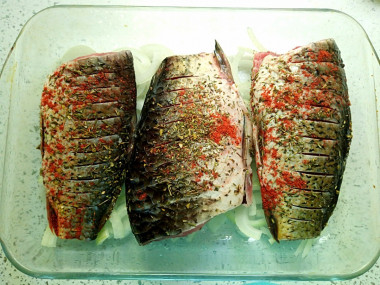 Для этого рецепта лучше брать не замороженную, а свежую рыбу, иначе готовая рыба рискует получиться сухой.