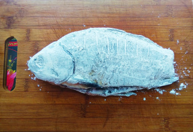 Для начала очистите карася от чешуи и выпотрошите. Вам повезет, если внутри рыбы будет икра. Ее очень вкусно пожарить как отдельно, так и в виде оладий, добавив яйцо. Словом, икру, если она есть, вытащите и отложите в сторону для другого рецепта.