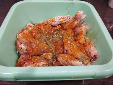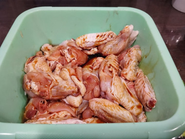 Я знаю вот такой способ запекания крылышек. В соевом соусе с медом, белым вином и другими специями.