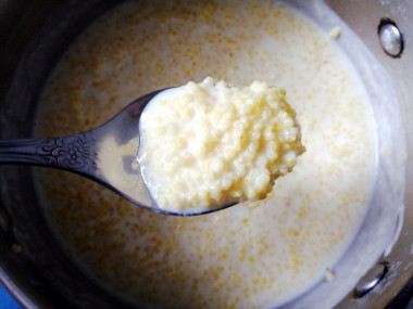 За время настаивания, в горячем молоке, пшено полностью дойдет до необходимой консистенции и впитает в себя почти все молоко.