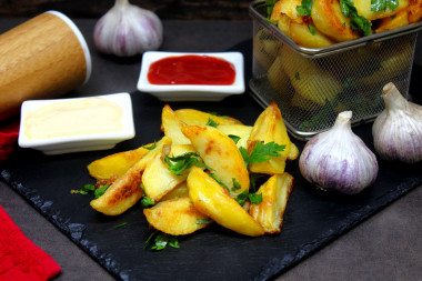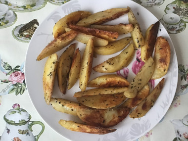 Как только в магазине появился молодой картофель, захотелось приготовить именно картофель Айдахо в духовке. При минимальной затрате сил и времени получается обалденно вкусное блюдо. Мне нравится, когда картошка со шкуркой. Это какой-то особый привкус, да и витаминов больше сохраняется. Главное хорошенько помыть клубни, я это делаю щеточкой для овощей. Еще мне понравился прием с кратковременным отвариванием долек. Действительно картофель получается мягким и нежным внутри. А благодаря маринаду, содержащему растительное масло, получается аппетитная румяная корочка. Вкус всегда можно подобрать на свой лад. Я в этот раз взяла все по списку. Состав очень хороший. Особенно наличие чеснока. Аромат при запекании такой дразнящий, что хочется, чтобы картошка быстрее запеклась! У меня на это ушло ровно 25 минут. Блюдо шикарное, рекомендую!