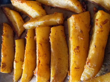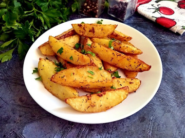 Отличная картошечка у меня получилась! Только картофель у меня был не молодой, поэтому я решила его очистить. Паприку я добавлять не стала, мне показалось, что соли, чеснока и зелени будет вполне достаточно. Масла мне понадобилось значительно меньше: на 850 гр. картофеля я израсходовала 2 ст.л. масла. Свой айдахо я запекала на противне с пергаментом. Получилось очень вкусно!!! Картошечка разлетелась на ура.