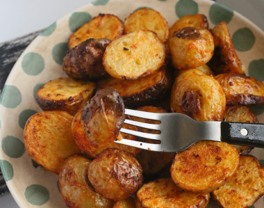 Нравится сочетание паприки копчённой с картофелем. Бюджетный вариант фаст фуда для детей. Я картофель 3 минуты в кипящей воде подержала,потом остудила немного и уже потом все специи с маслом. С солью всегда тяжело угадать по количеству,но в этот раз получилось.