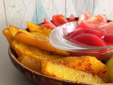 3) добавить в маринад немного (и когда я говорю немного, я имею в виду немного), т.к. кислота делает что-то там, отчего картошка лучше печётся или что-то типа того.