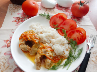 Затем выложите овощи в майонезе в сковороду с рыбой. Накройте её крышкой и тушите на небольшом огне 15-20 минут. В конце приготовления добавьте по вкусу немного соли и специи.