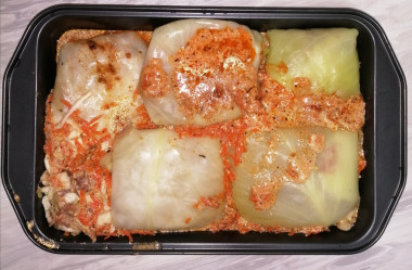 Приготовила голубцы в духовке в томатно- сметанном соусе. Использовала белокочанную капусту, выбрала рыхлый вилок, чтобы легче было разобрать его на листочки. Фарш взяла свиной, добавила к нему отварной рис, лук натерла на тёрке, посолила, приправила черным перчиком. Сформировала голубцы, выложила их в огнеупорную форму, залила томатно- сметанным соусом с обжаренными морковью и луком. Запекала при температуре 180 градусов в течение 45 минут. Получилось очень вкусно, сытно, аппетитно! Спасибо за рецепт, Юлия!