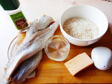 Как сделать минтай с рисом? Подготовьте все необходимые ингредиенты. Рис у меня круглозерный. Как выбрать рис вы можете узнать прочитав статью на эту тему в конце рецепта. Замороженную рыбу достаньте заранее из морозилки. все тонкости разморозки вы узнаете из статьи под шагами.