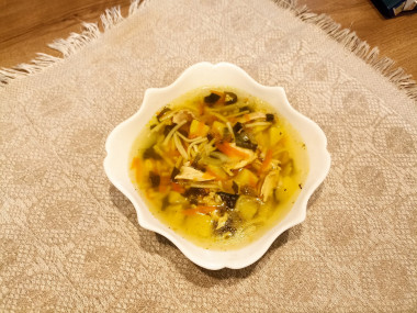 Мне нужно было быстро приготовить суп. Нашла этот рецепт, он оказался то, что надо. Куриный яичный суп быстрый, и сытный, и очень вкусный. Только совсем не было времени сделать домашнюю лапшу к нему, добавила вермишель. Очень понравилось, что не надо ничего обжаривать. Морковь натерла на крупной терке, мелко порезала репчатый лук, картошку и в кастрюлю. Добавила зеленый лук. Бульон сварила из куриных крылышек и хребта. Суп получился замечательный! Большое спасибо автору!
