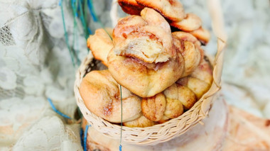 Сделала косички с сахаром и корицей. Теста хватило на 8 штук среднего размера. Выпекала косички при 180 градусах 25 минут: 10 минут на среднем уровне духовки и 15 минут на самом верхнем. Косички получились мягкие и пышные.