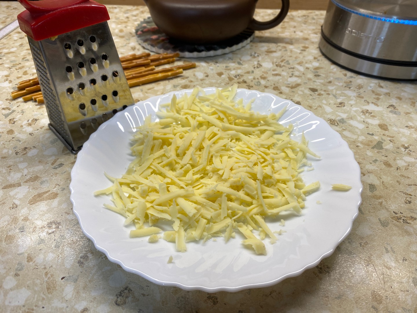 Сыр натрите на терке. Я выбрала среднюю, но можно тереть и на крупной, это как вам больше нравится.Шаг 3: