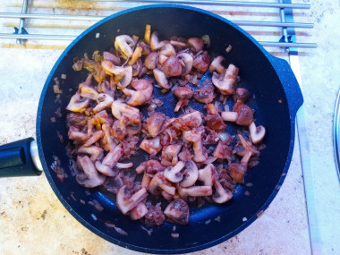 Смешайте всё с обжаренными грибами.