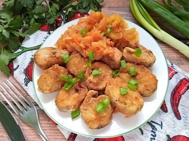 Для такой жареной рыбки можно приготовить любой гарнир или просто дополнить её свежими овощами. Приятного аппетита!