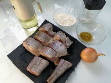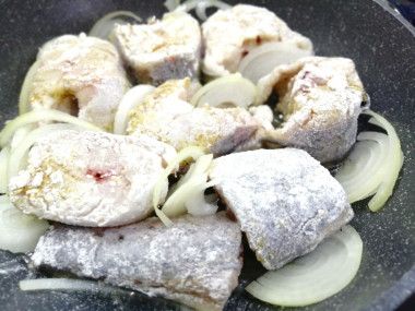 Я знаю вот такой рецепт - жареный минтай с луком.