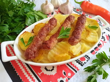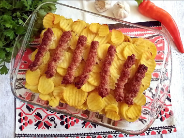 На ужин решила запечь колбаски чевапчичи в духовке и не ошиблась с выбором. Вся семья в восторге! Любимое сочетание картошки и мяса в необычном формате!