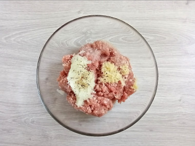 Положите в миску оба вида фарша. Измельчите лук и чеснок любым удобным для вас способом. Я натерла на терке, можете воспользоваться мясорубкой или блендером. Посолите и поперчите продукты, можете добавить любые другие специи и приправы. Влейте газированную воду.