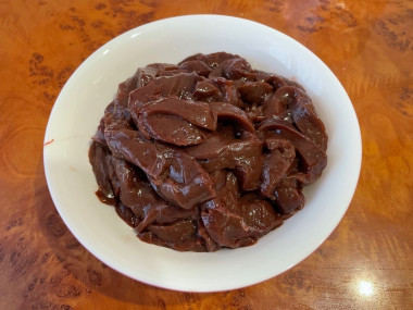 Бефстроганов из печени говяжьей получился очень нежным, печень таяла во рту. Густая подлива отлично подошла к гарниру из макарон. К тому же на приготовление печени уходит не так много времени, да и польза организму неоспорима. Благодарю за рецепт.