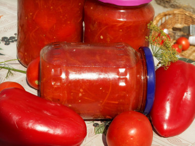 Разложите горячее лечо из помидор пальчики оближешь по стерильным баночкам, укупорьте герметично стерильными крышками. Переверните баночки с лечо из помидор и перца вверх дном, укутайте теплым пледом и оставьте в таком состоянии до полного остывания. Приятного аппетита!