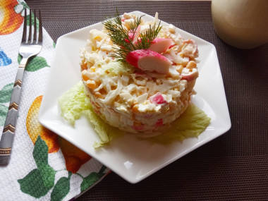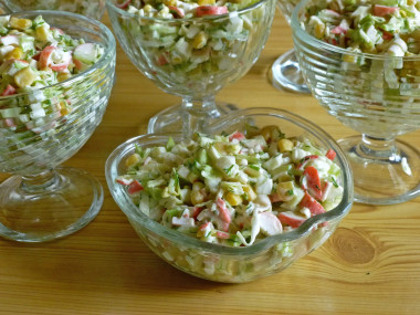 Салат крабовые палочки с капустой и кукурузой получается более сочным, если добавить в него молодую капусту. Также вкус салата зависит от главного компонента – крабовых палочек или крабового мяса. Я предпочитаю готовить салат не с морожеными палочками, а с охлажденными, они более мягкие и сочные. Я люблю этот салат, не стыдно и на праздник подать. Спасибо за рецепт.
