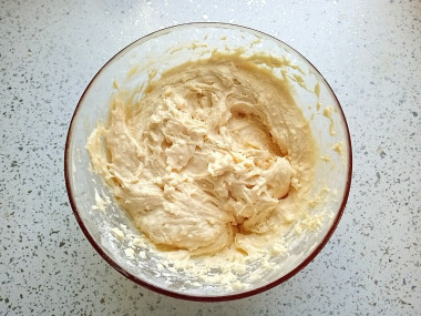 В блендер закладываю творог, сахар, сливочное масло комнатной температуры, куриные яйца. Всё перемешиваю.