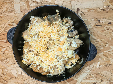 Готовится такая рыбка очень просто и достаточно быстро. Запекала судака в чугунной форме около 20 минут. Получилось очень вкусно. Меня изначально удивило наличие в составе блюда вареных яиц, но оказалось, что они здесь как нельзя кстати.