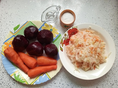 Свеклу и морковь промыть под проточной водой и отварить в кастрюле по полной готовности. Надо учитывать, что морковь варится примерно час, а свекла среднего размера около 1,5 часа. Проверить овощи на предмет готовности можно, проткнув их вилкой или кухонным ножом.