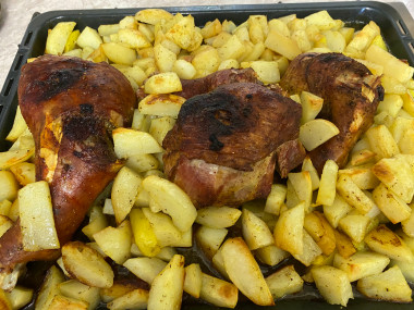 Впервые делала индейку. Ориентировалась на простоту рецепта и визуальное восприятие. Возможно у меня фото не такое эстетически красивое, зато результат просто ОГОНЬ! Картошечка получилась мягенькая, пропитанная соком индейки. Мясо индейки отходило от костей и таяла во рту)) Делала по случаю праздника с расчетом на привередливых детей)), но часть гостей не пришли, поэтому боялась, что останется много. Но индейка так пришлась по вкусу, что остались только кости (даже хрящики умяли)))) Порадовал вкус (хотя я сама не очень люблю индейку), и простота рецепта. Буду делать еще.