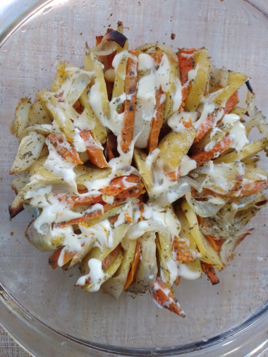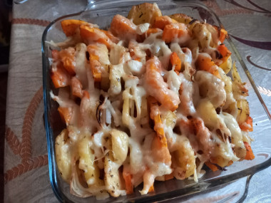 Очень понравился гарнир, пряный, овощи дополняют друг друга. Запекала все под фольгой 45мин и 15 мин добавив сыр без фольги. Спасибо за рецепт!)