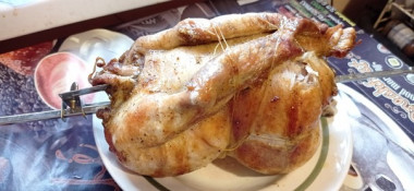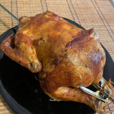 отличная курочка на вертеле на гриле получилась, всей семье очень понравилось, включая самого маленького, спасибо за рецепт, буду готовить не один раз