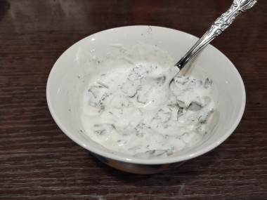 Приготовим соус на основе сметаны. Для этого зелень петрушки (можно заменить укропом или зеленым луком) помыть, высушить и мелко порезать. В миску налить сметану и высыпать туда зелень, тщательно перемешать. По желанию в соус можно добавить любые ингредиенты, лишь бы они сочетались с красной рыбой.