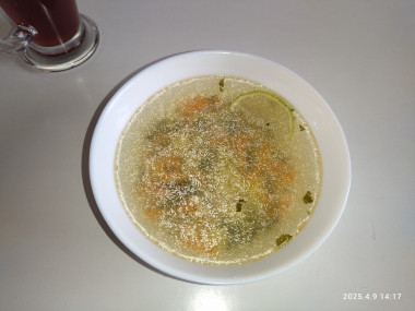 В отличие от совета в рецепте, не разделяла бульон на 2 порции, несмотря на то, что кажется, что в супе плавает много рыбьего жира, сам по себе бульон жирным не ощущается(на фото видно). Тем более рыбий жир полезен.