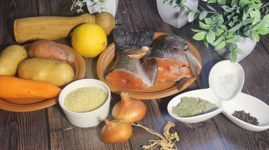 Как сварить уху из головы форели? Возьмите указанные продукты по списку. Старайтесь подбирать качественные, без изъянов, свежие. Особенно это касается рыбы. Хорошо промойте овощи и очистите их от кожуры.