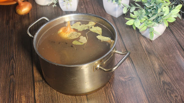 Для чего процеживать бульон я не поняла, поэтому этого не делала, в целом, он получился довольно прозрачный. И вместо перца горошком использовала молотый черный перец.
