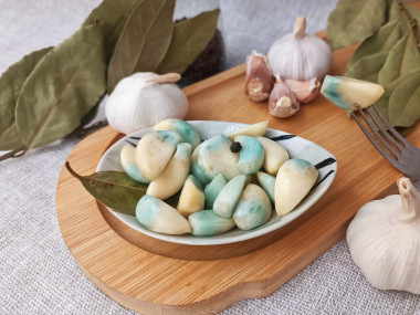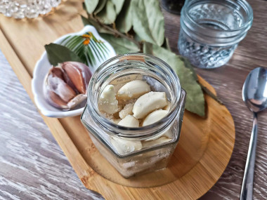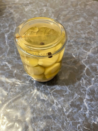 Как и рекомендовано в рецепте, открыла банку через 3 дня. Маленькие зубчики чеснока получились, что надо - хрустящие, с приятной кислинкой и пряным послевкусием. А вот крупные промариновались чуть меньше и остались островатые. Я оставила банку в холодильнике ещё на 3 дня.