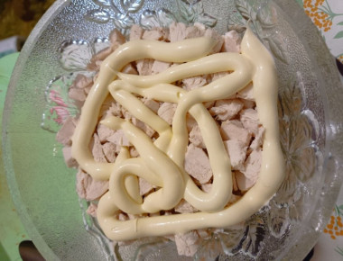 Поскольку мы с мужем предпочитаем майонез, то салат именно им и заправляли, но не каждый слой, что бы не было перебора.