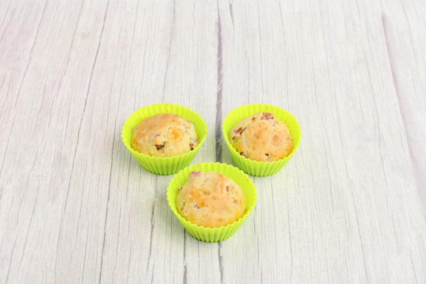 Ветчина: выбирайте ветчину без гелеобразной глазури — при выпечке она даст воду, и маффины не пропекутся внутри.