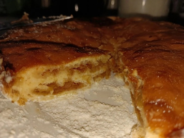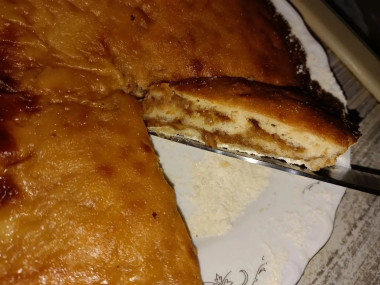 Вроде все по рецепту делал, пошагово, слоями выложил, молоком залил, потыкал шпажками основательно (из-за этого, думаю, у меня слоев практически не видно) . но снизу пирог все равно сухой остался. На вкус тоже так себе (сахара многовато), шарлотка вкуснее и менее капризная.