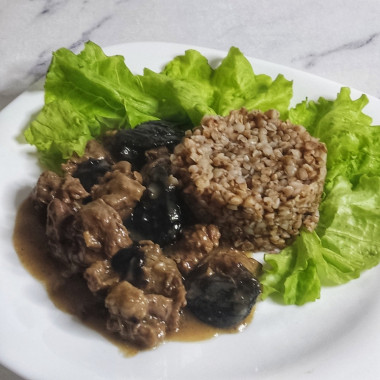 Гуляш из говядины с черносливом - очень вкусное блюдо, отлично подойдёт для любого повода! Мясо получается нежным и вкусным. Чернослив придаёт чудесный аромат мясу,нежную нотку вкуса! На гарнир я отварила гречку.
