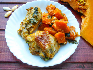 Потрясающе вкусное блюдо! Никогда не готовила курицу с тыквой, но благодаря этому рецепту попробовала новый вкус. Думала что курица сочетается только с ананасом.)) Спасибо автору за простоту и гениальность рецепта. Единственное что я добавила от себя, это семена зиры. И не ошиблась, зира пришлась невероятно кстати. Ароматная курица и пикантная тыква - самостоятельное оригинальное блюдо.