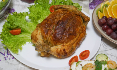 Оригинальная, эффектная, на праздничный стол! Курица, фаршированная блинами, станет прекрасным украшением любого застолья. Чтобы приготовить ее, придется немного потрудиться, но результаты окупят все старания — блюдо по достоинству оценят и гости, и семья.