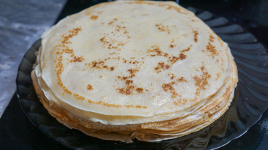 Выпекайте блины на хорошо разогретой сковородке с двух сторон до румяности. Готовые блины смажьте сливочным маслом, чтобы они не слипались между собой.