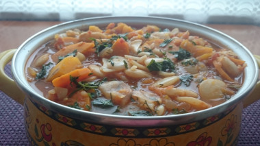 Сладость фасоли, фактура сезонных овощей подчеркнуты пикантными специями.