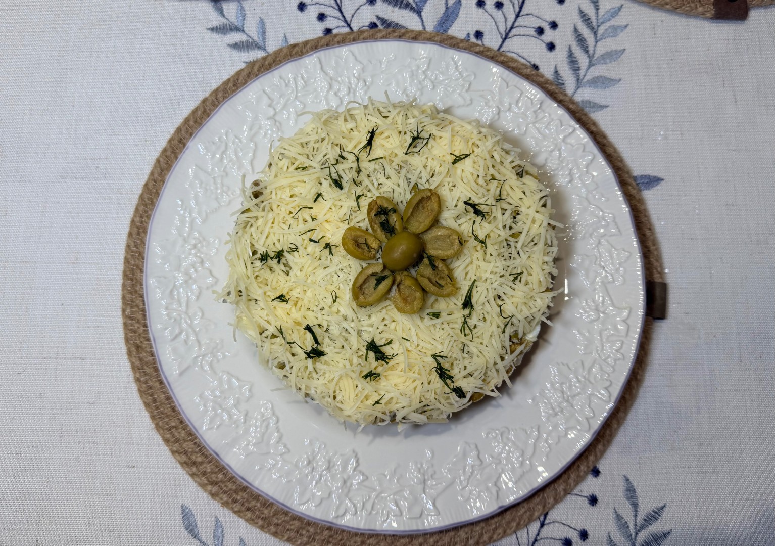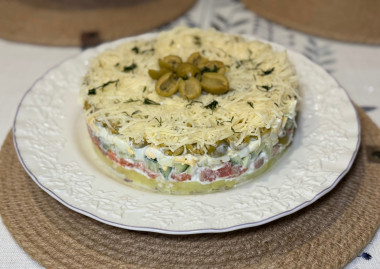 Салат понравился! Пока готовила аромат был очень соблазнительный и хотелось побыстрее его попробовать 🤤 Картошка и яйца оттеняют соленость рыбы и оливок, сметана придает нежность, а огурцы очень кстати освежают. Сверху украсила сыром, так как была необходимость его использовать до истечения срока годности 🤭 Но он очень хорошо вписался в данное блюдо, в следующий раз тоже буду делать с ним. Хотела бы посоветовать проверять на соленость оливки и рыбу. Мои оливки оказались настолько солеными, что мне пришлось их промыть и все равно салат вышел слегка пересолен, мне можно было бы добавить чуть больше огурцов или картофеля, чтобы сбалансировать вкус. Тем не менее очень рекомендую данный рецепт, спасибо большое 🔥