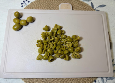 Оливки также нарежьте мелкими кубиками.Шаг 7: