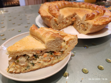 Пирог с палтусом из дрожжевого теста разрежьте на порции и подавайте к столу. Приятного аппетита!