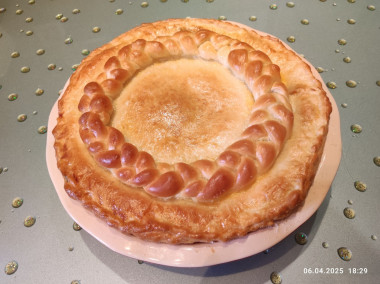 Вторую часть теста раскатайте аналогично первой. Накройте тестом начинку. Края хорошо защипните.