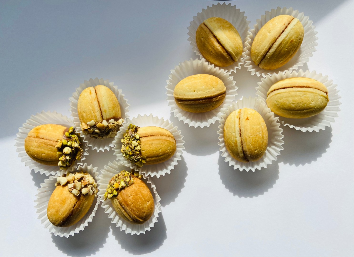 Все выпеченные половинки орешков начиняйте ранее приготовленной и охлажденной домашней вареной сгущенкой. Когда все половинки будут заполнены сгущенкой, останется только соединить половинки между собой. Печенье орешки с домашней вареной сгущенкой готовы! Приятного аппетита!
