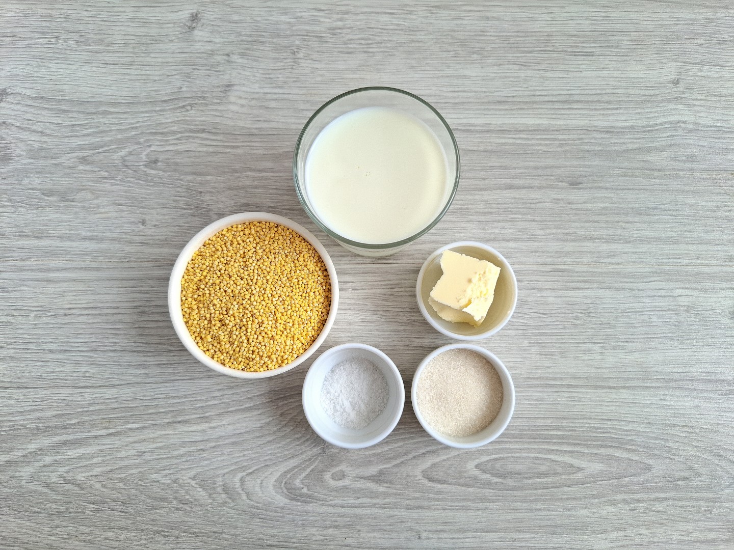 Как сварить рассыпчатую пшенную кашу на молоке в кастрюле? Подготовьте продукты. Пшено выбирайте яркого цвета, крупное, без большого количества красных крупинок — каша из такой крупы получится вкуснее. Молоко подойдет любой жирности. Вы также можете сварить кашу на одной воде или на смеси молока и воды. Сливочное масло берите качественное, натуральное, без растительных жиров в составе. Количество сахара и соли регулируйте по своему вкусу.Шаг 2: