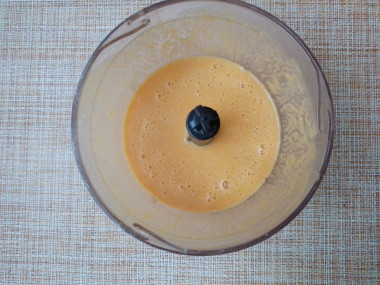 На разогретую сковороду налить немного растительного масла (половину) и выложить половину порции нарезанной кубиками тыквы. Обжарить тыкву до золотистой корочки и влить сметану и куриный бульон (можно заменить овощным). Перемешать тыкву и накрыть сковороду крышкой. На медленном огне тушить тыкву в течение 20-25 минут до мягкого состояния - чтобы ее можно было проткнуть вилкой. Добавить в сковороду порошок карри, порошок куркумы, соль, перец и тщательно все перемешать. Снова накрыть крышкой и тушить на протяжении 10 минут. Снять сковороду с огня и переложить все содержимое в чашу блендера (или кухонного комбайна). Взбить всё до однородного состояния на небольших оборотах. Это и будет соус, которым будет приправлено готовое блюдо.