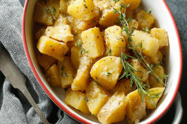 Картошка в сметане с чесноком - это очень вкусно! Готовится просто. Отличный вариант гарнира к любому блюду! Между прочим, такую картошку и на праздничный стол поставить можно